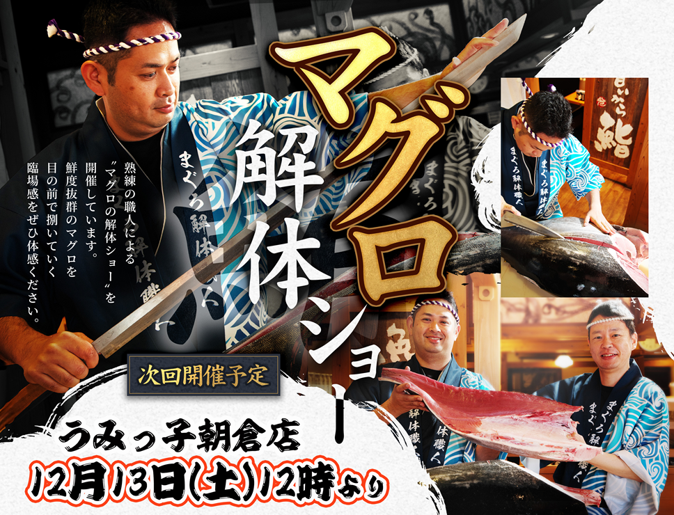 2025年最後のマグロ解体ショー!! 2025年12月1日うみっ子, お知らせ, マグロ解体ショー, 回転寿司, 愛知県知多市マグロ解体ショー, 回転でらうま寿司, 回転寿司うみっ子sushiplaza-maruchu Tweet 2025年最後のマグロ解体ショーは うみっ子 朝倉店にて開催いたします🐟 ご来店お待ちしております☆⌒(*^-゜)v